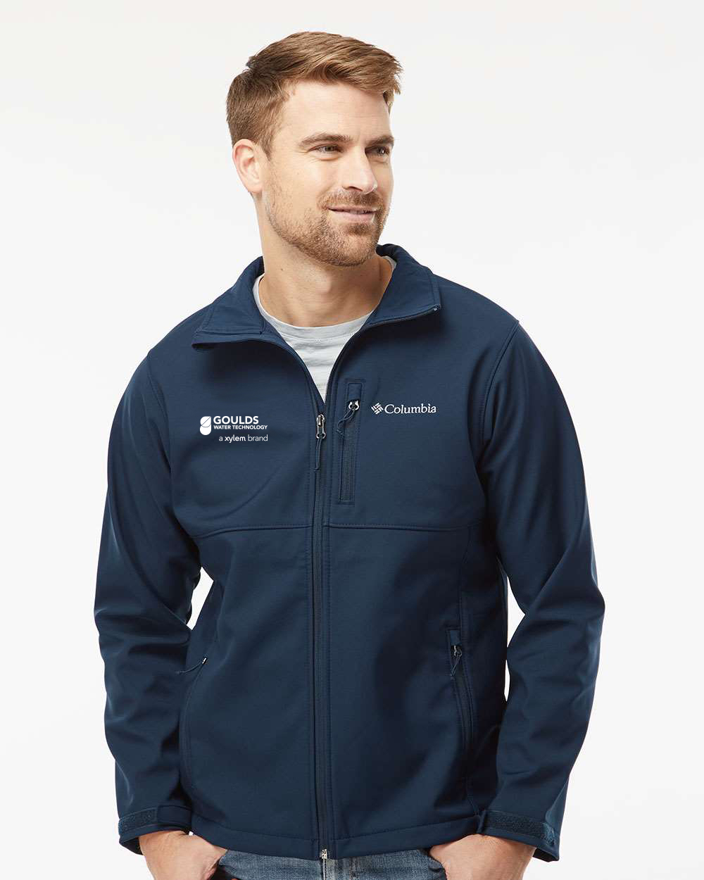 100% polyester contour softshell Wind- and water-resistant Abrasion-resistant chin guard Zippered hand and chest pockets Adjustable cuff tabs Adjustable drawcord hem