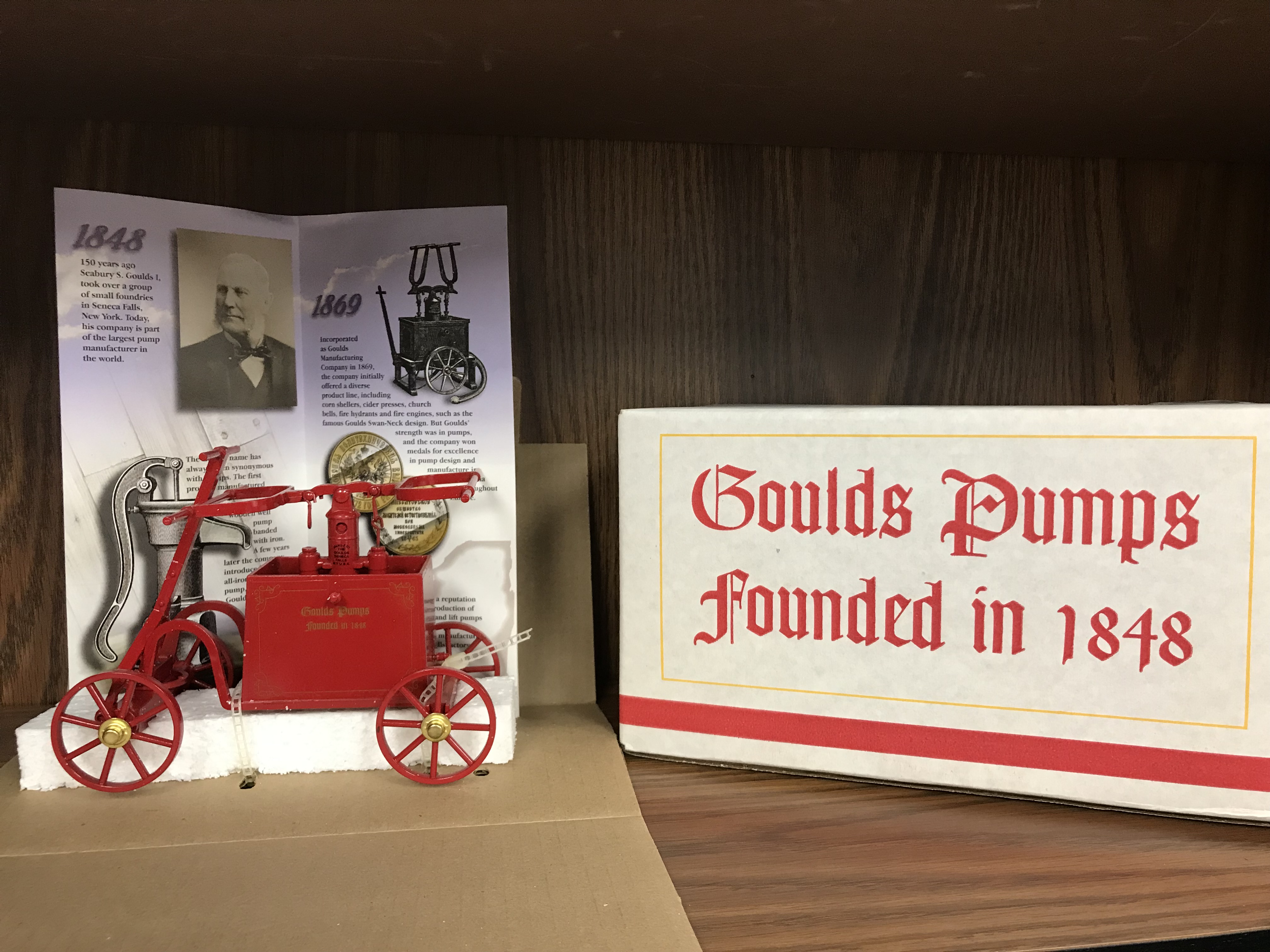 Fire truck replica red 6" custom swan neck limited edition imprinted with Goulds Pumps.